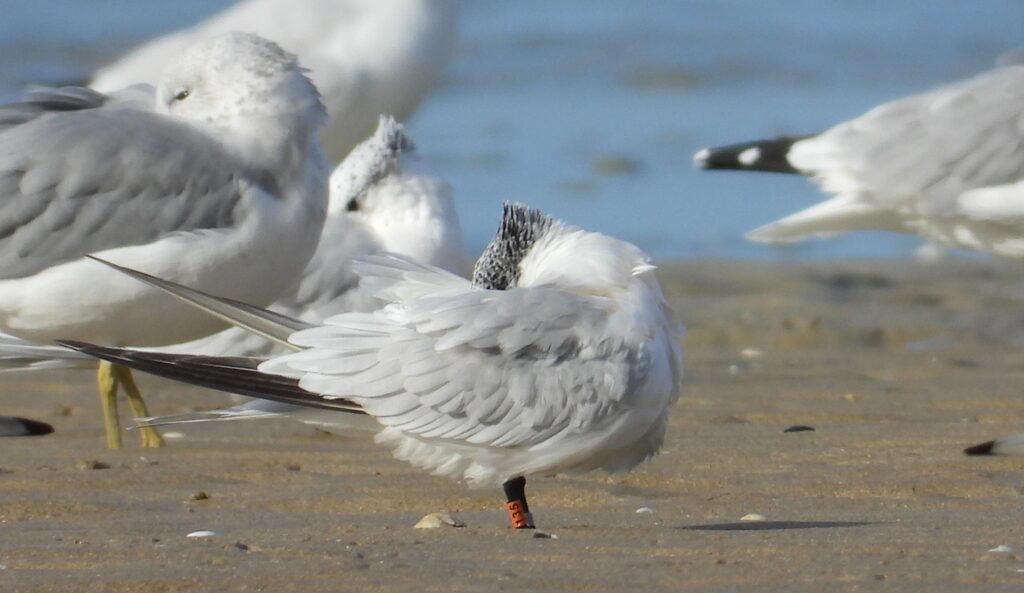Grâce à sa bague bien visible, O-135 a été revue 3 fois depuis, à Concarneau (29), sur le grand reposoir de sternes de Saint-Pair-Sur-Mer (50) et en Baie du Mont-Saint-Michel (50). Un grand merci aux observateur-rice-s à l’œil aiguisé qui nous transmettent leurs observations !